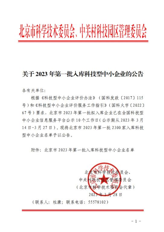 北京市2023年第1批入庫科技型中小企業名單公告正文.jpg PICTURE
