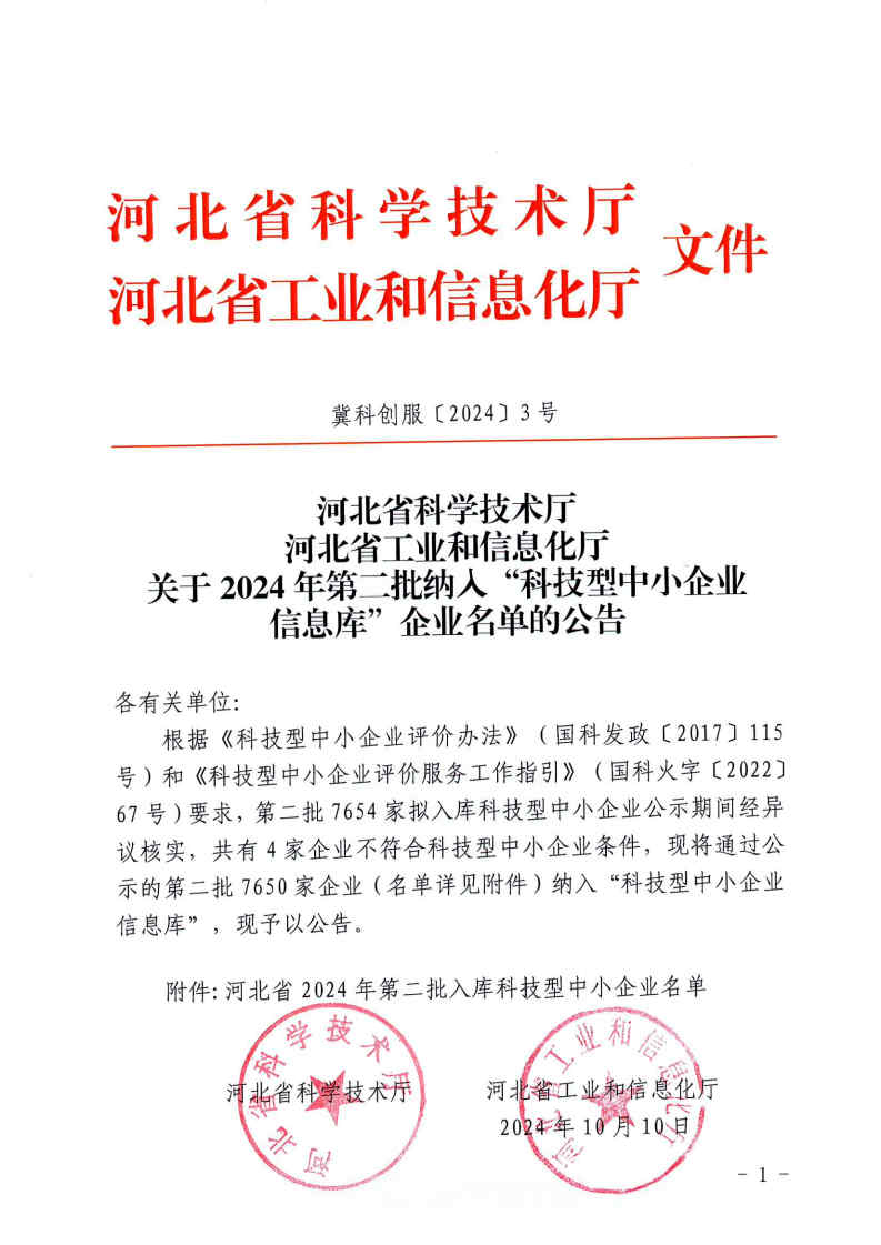 河北省2024年第2批入庫科技型中小企業名單公告正文.jpg PICTURE