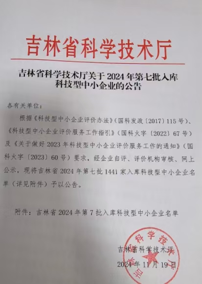 吉林省2024年第7批入庫(kù)科技型中小企業(yè)名單公告正文.jpg PICTURE