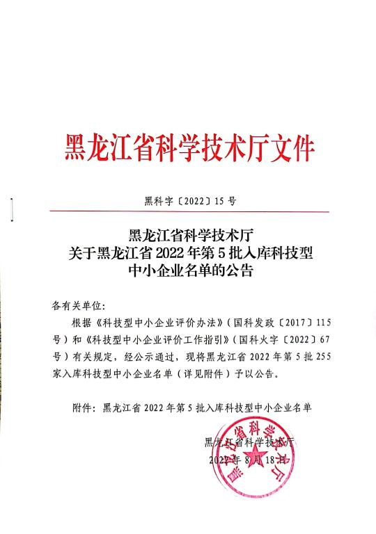 黑龍江省2022年第5批入庫科技型中小企業名單公告正文.jpg PICTURE