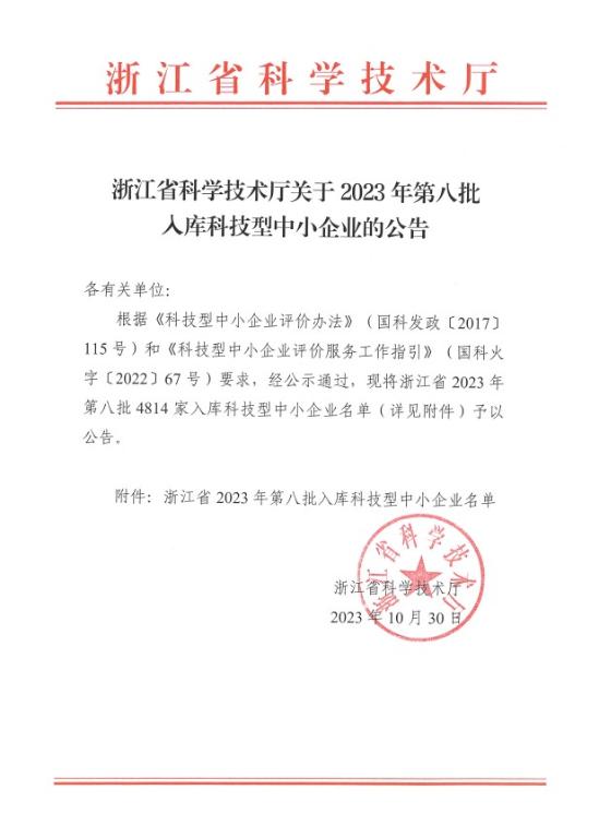 浙江省2023年第8批入庫科技型中小企業名單公告正文.jpg PICTURE