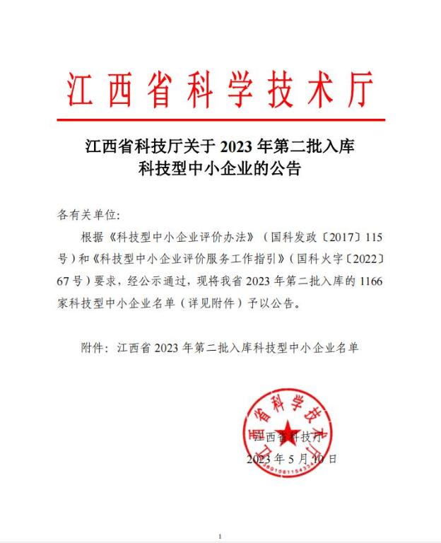 江西省2023年第2批入庫科技型中小企業名單公告正文.jpg PICTURE