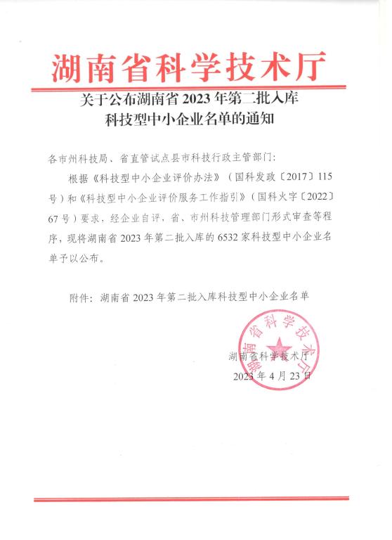 湖南省2023年第2批入庫科技型中小企業(yè)名單公告