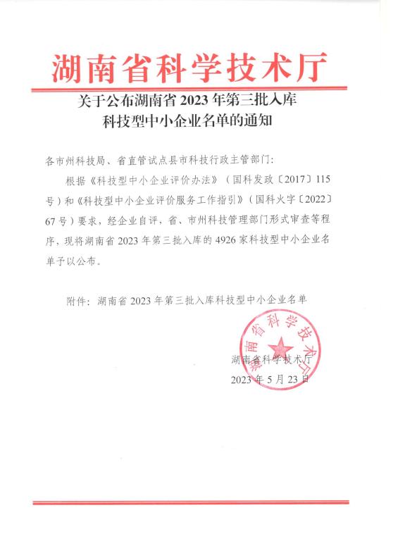 湖南省2023年第3批入庫科技型中小企業名單公告正文.jpg PICTURE