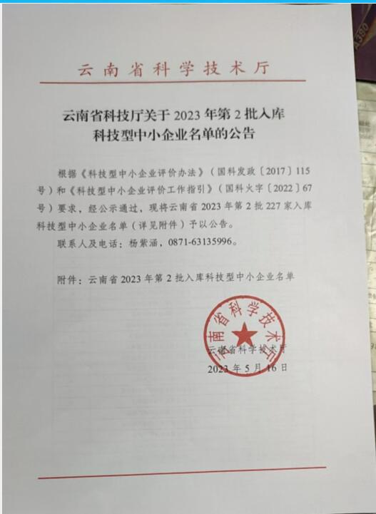 云南省2023年第2批入庫科技型中小企業(yè)名單公告