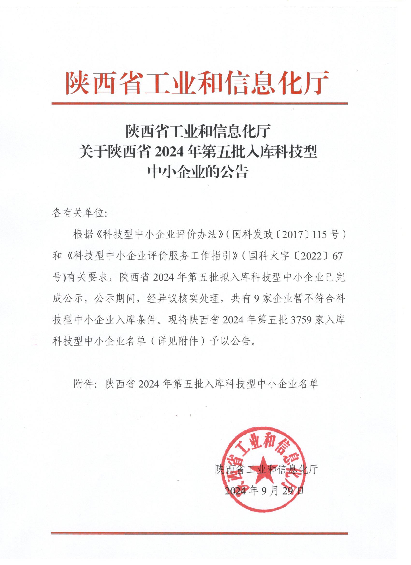 陜西省2024年第5批入庫科技型中小企業名單公告正文.jpg PICTURE