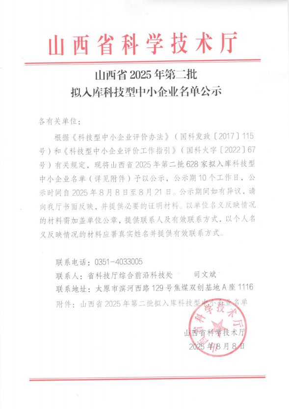 山西省2025年第2批擬入庫(kù)科技型中小企業(yè)名單公示正文.jpg PICTURE