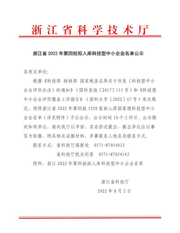 浙江省2022年第4批擬入庫(kù)科技型中小企業(yè)名單公示正文.jpg PICTURE