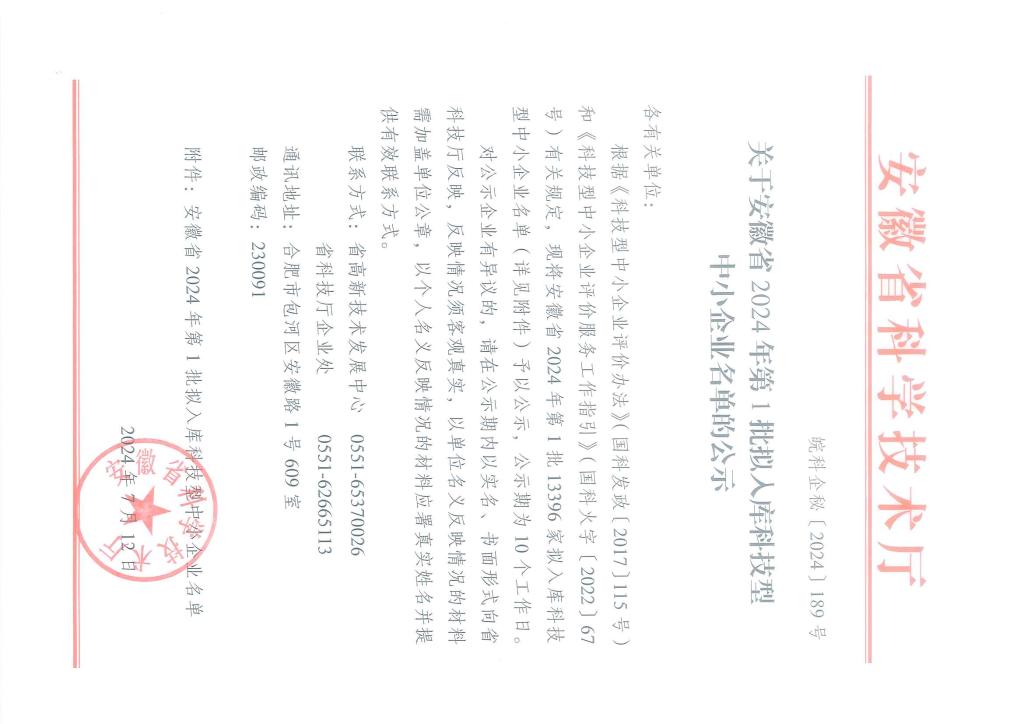 關于安徽省2024年第1批擬入庫科技型中小企業名單的公示(1).jpg PICTURE