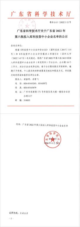廣東省2022年第6批擬入庫科技型中小企業(yè)名單公示