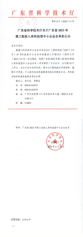 廣東省2023年第3批擬入庫科技型中小企業(yè)名單公示