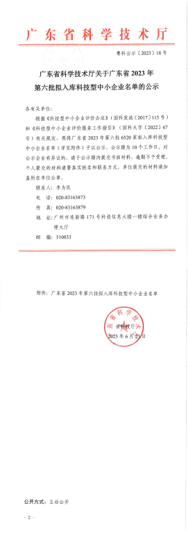廣東省2023年第6批擬入庫科技型中小企業(yè)名單公示
