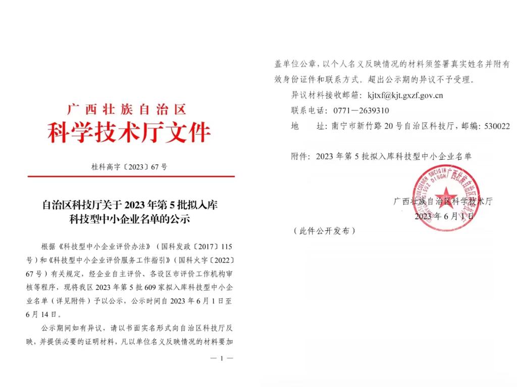 廣西壯族自治區2023年第5批擬入庫科技型中小企業名單公示正文.jpg PICTURE