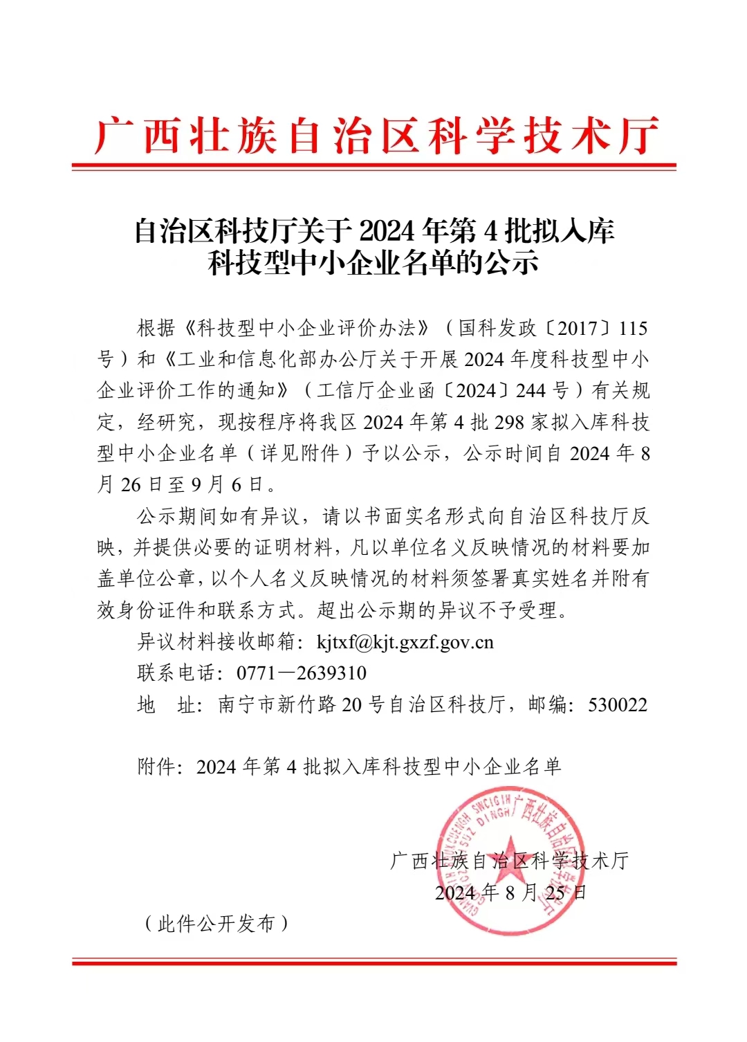 廣西壯族自治區2024年第4批擬入庫科技型中小企業名單公示正文.jpg PICTURE