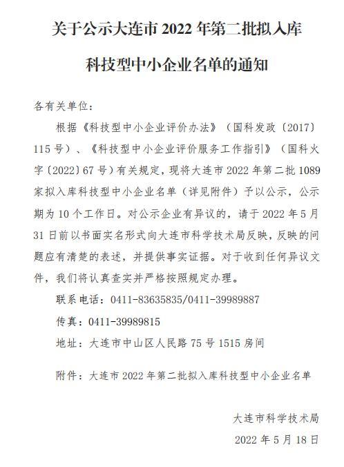大連市2022年第2批擬入庫科技型中小企業名單公示正文.jpg PICTURE