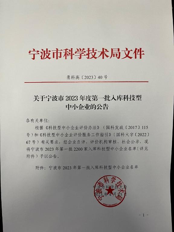 寧波市2023年第1批入庫(kù)科技型中小企業(yè)名單公告
