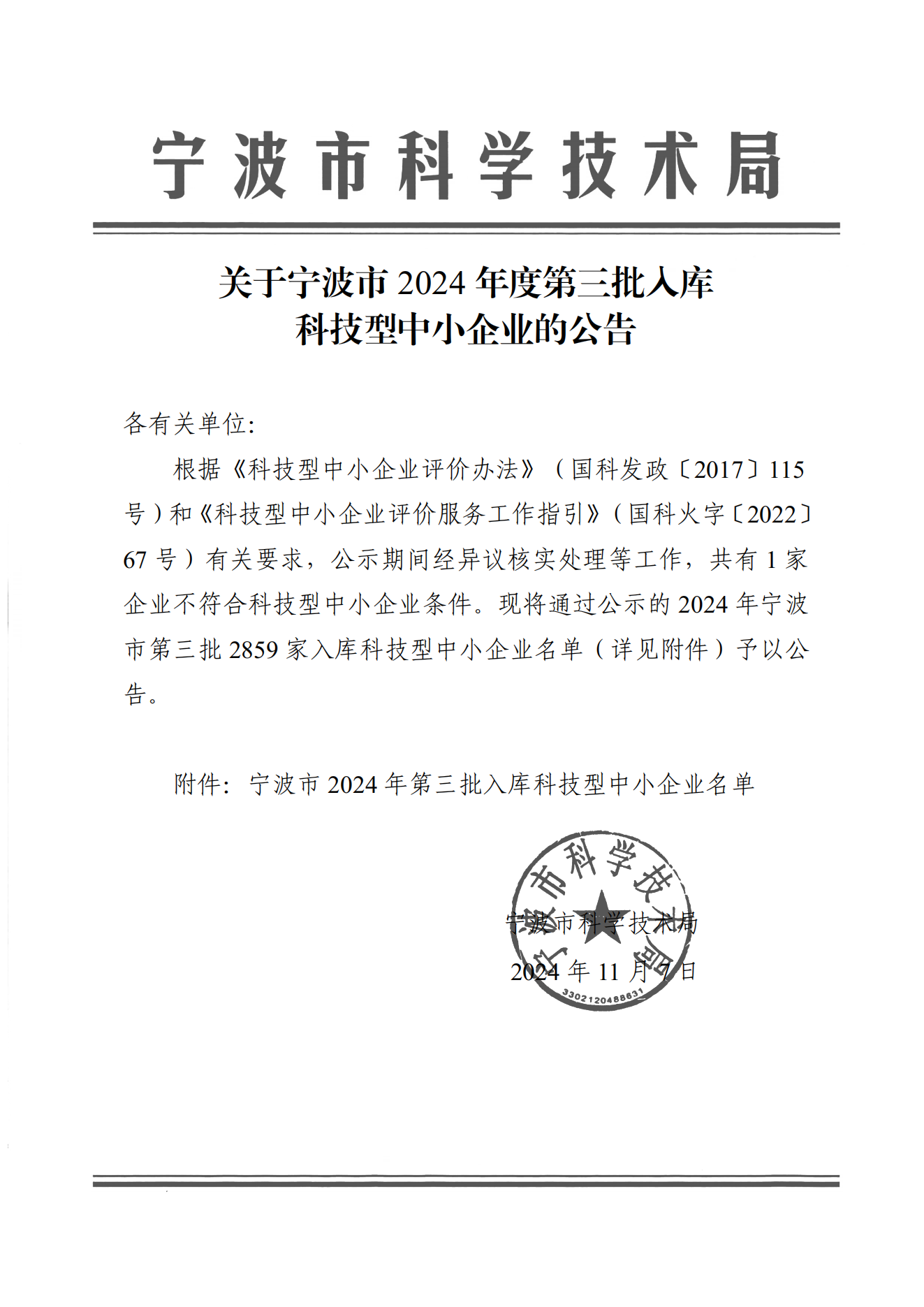 寧波市2024年第3批入庫科技型中小企業名單公告正文.jpg PICTURE