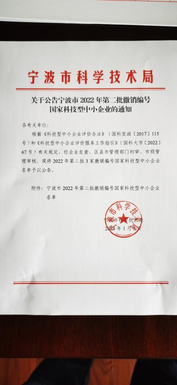 寧波市2022年第2批撤銷編號(hào)科技型中小企業(yè)名單公告正文.jpg PICTURE