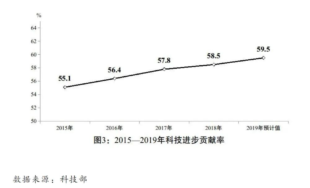 (四)深入實(shí)施創(chuàng)新驅(qū)動(dòng)發(fā)展戰(zhàn)略,科技創(chuàng)新能力進(jìn)一步提升。不斷深化科技體制改革,大力支持基礎(chǔ)研究和應(yīng)用基礎(chǔ)研究,全國(guó)研究與試驗(yàn)發(fā)展經(jīng)費(fèi)投入強(qiáng)度達(dá)2.19%,科技進(jìn)步貢獻(xiàn)率提高到59.5%。